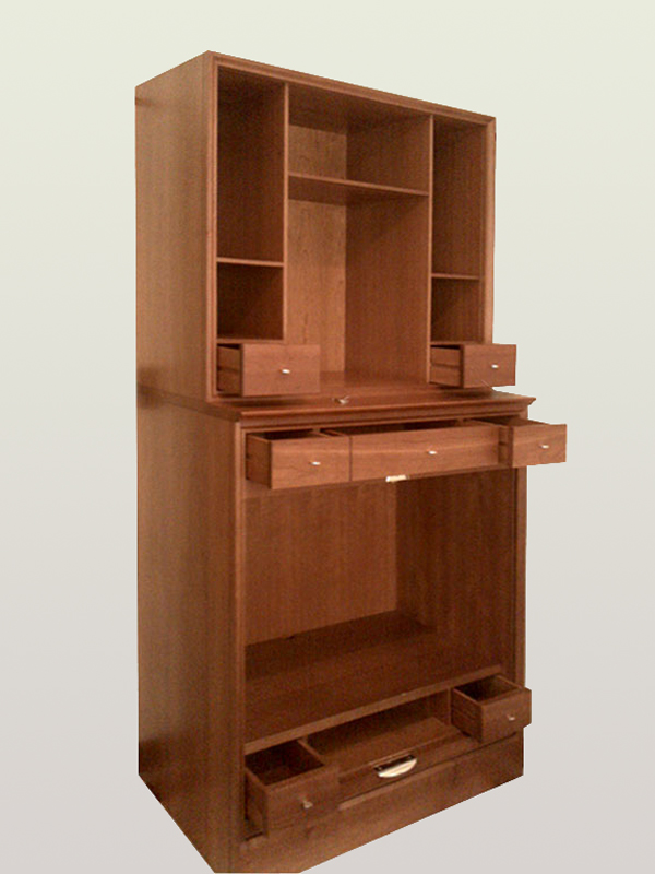 merisier solide et plaqué sur contreplaqué de peuplier, poignées en laiton satiné